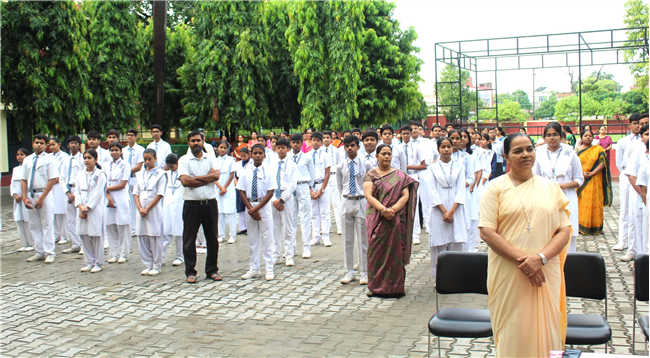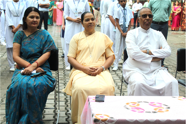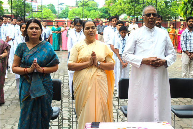 the school quadrangle at 8:00 am by the students of class XI. Rev. Fr. John