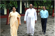 with a bouquet of flowers. Then, Niharika introduced Gandhiji and his